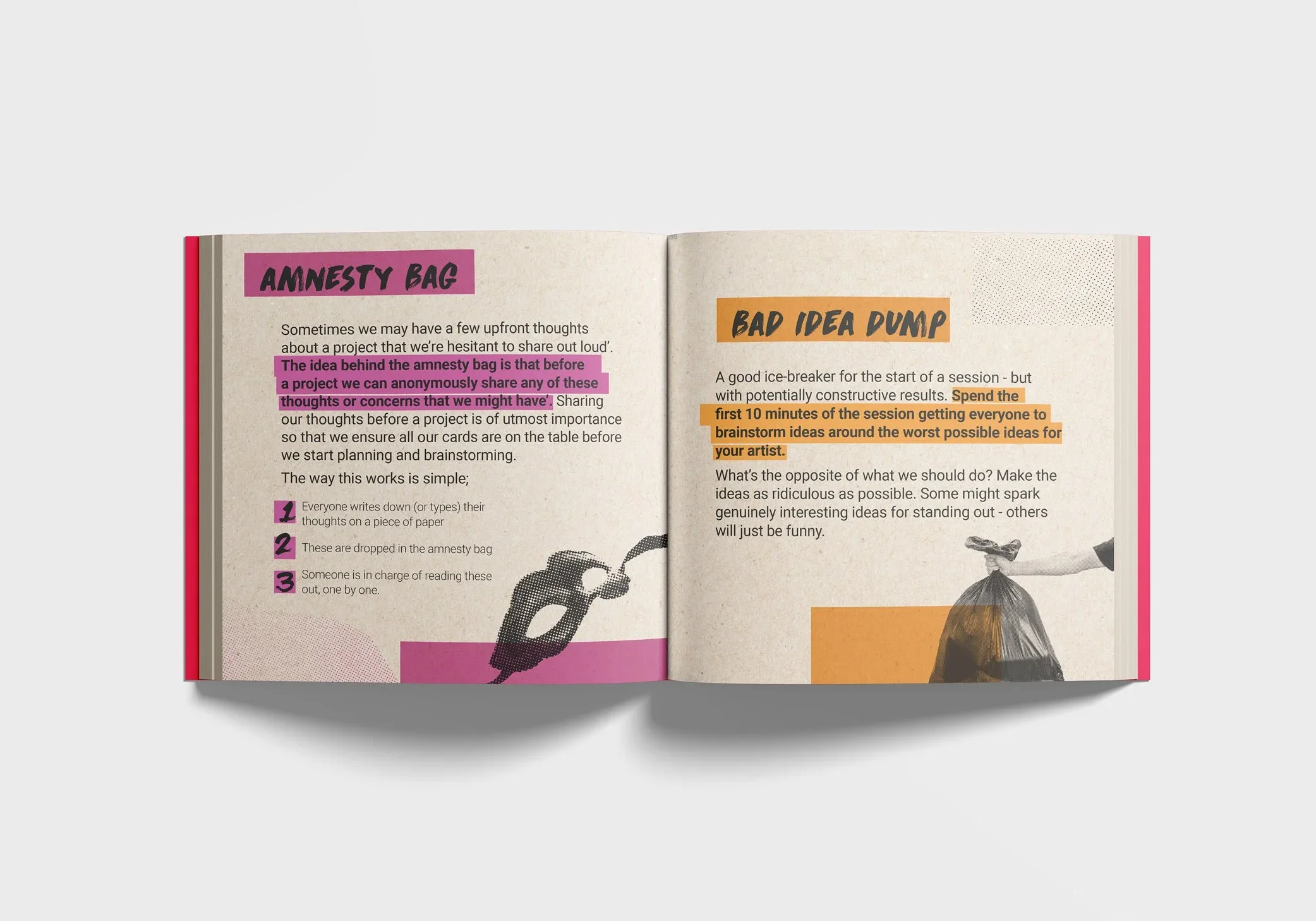 The scrapbook-inspired visual language felt organic and playful, blending textured paper, hand-drawn type, sticker-style graphics and vibrant accent colours.